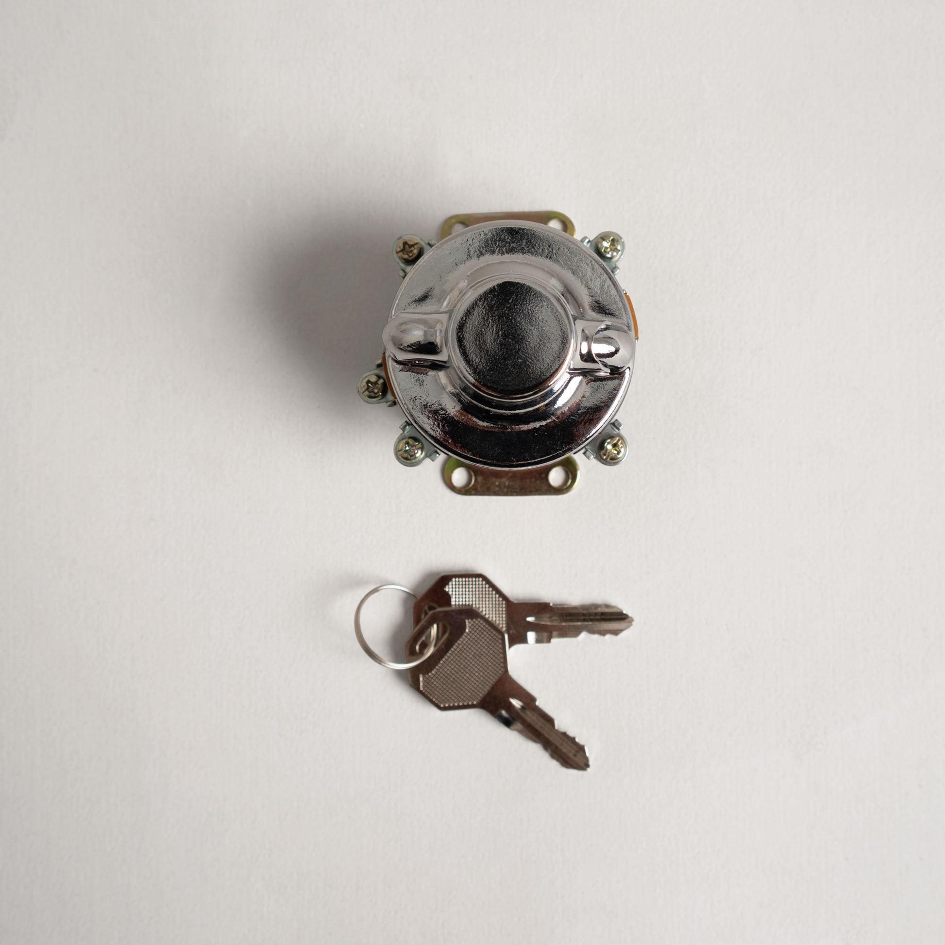 Shiny, simple, and solid—this classic-style 5-terminal switch is just what you need to fire things up. Designed to work perfectly with our AeroGlide Ignition Switch Mount, it’s got that timeless look with a chrome steel body and includes a pair of double-cut keys.