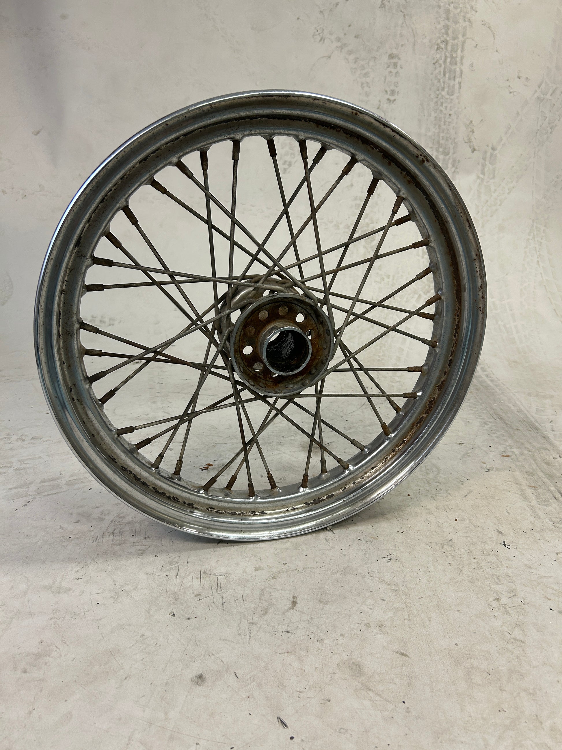 Swapmeet find, not all bent up and the spokes are all there. No guts.