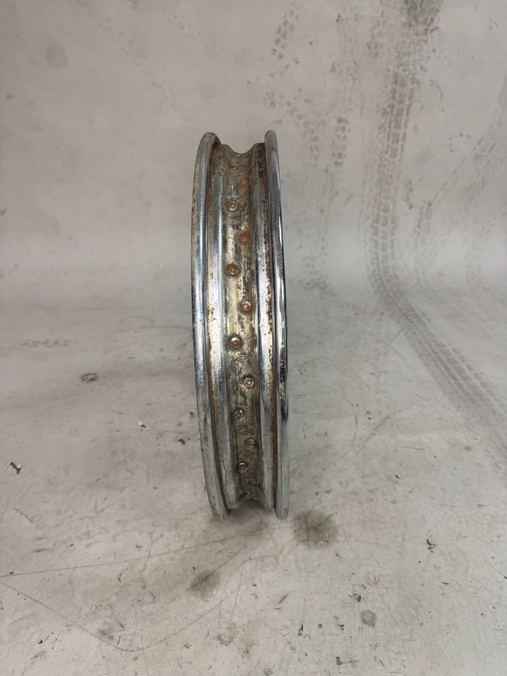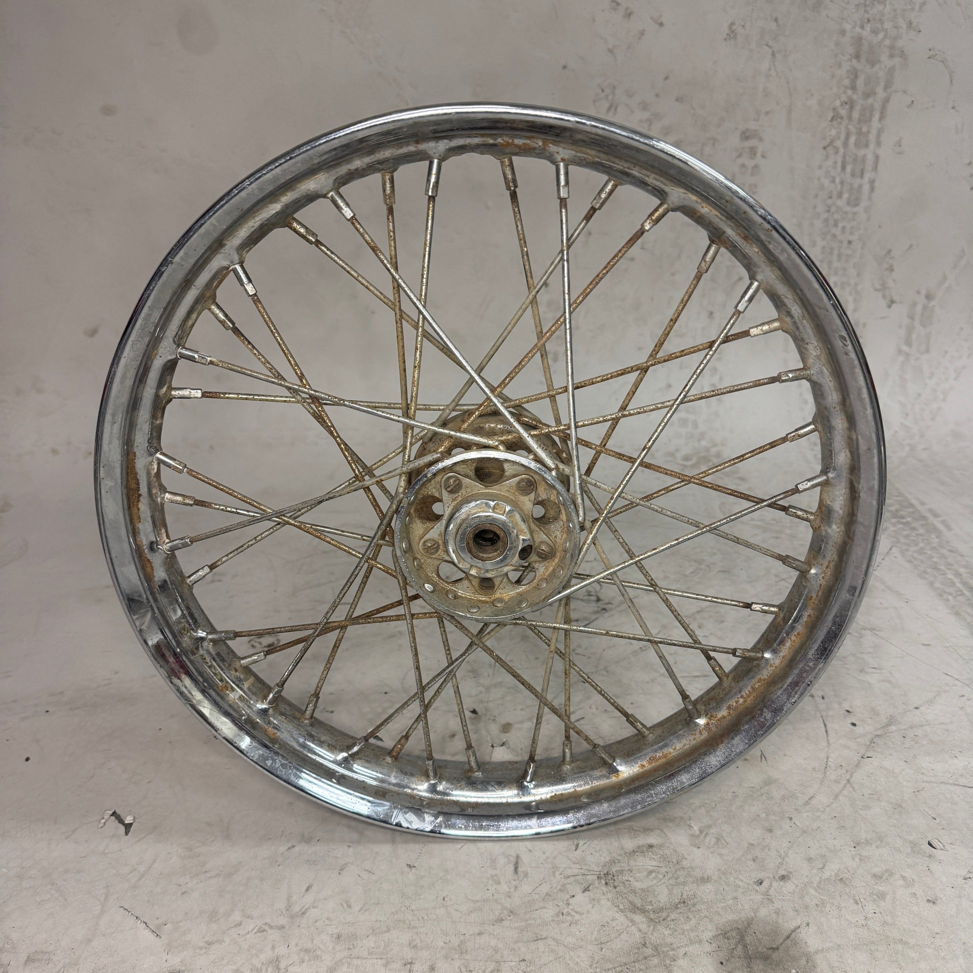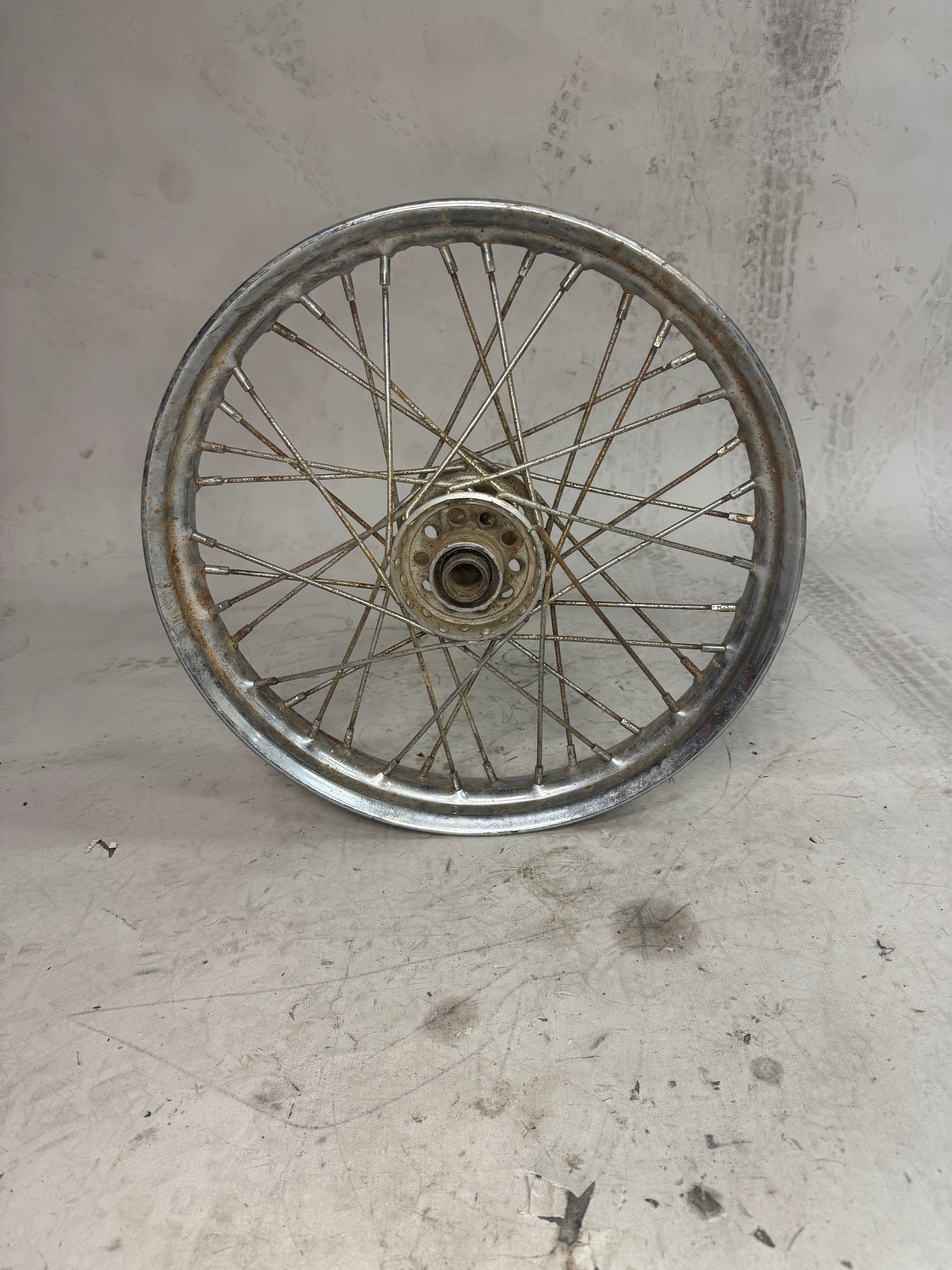 It might be crusty but it's the real deal and it's still in good shape. Not bent, has all the spokes, hub isn't fully loaded.