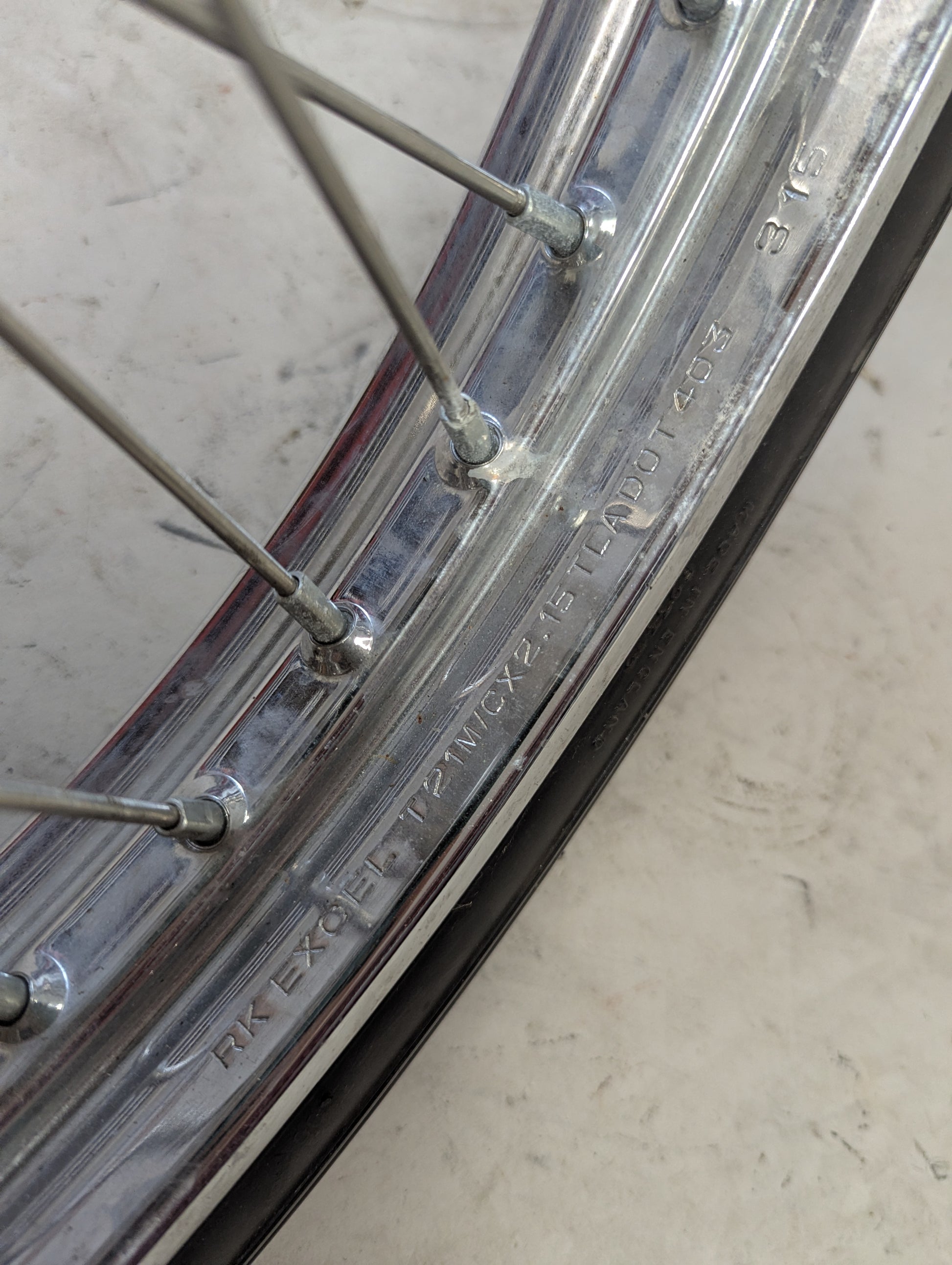 Nice used 21" spool hub wheel for 3/4" axle. Not bent, Avon sped master still has life. Avon no longer makes this tire so they are a bit of a delicacy now.