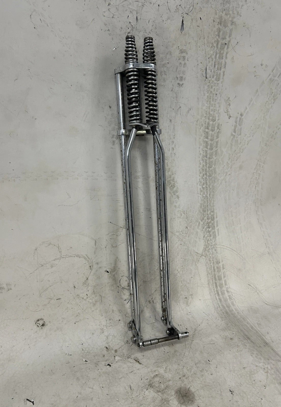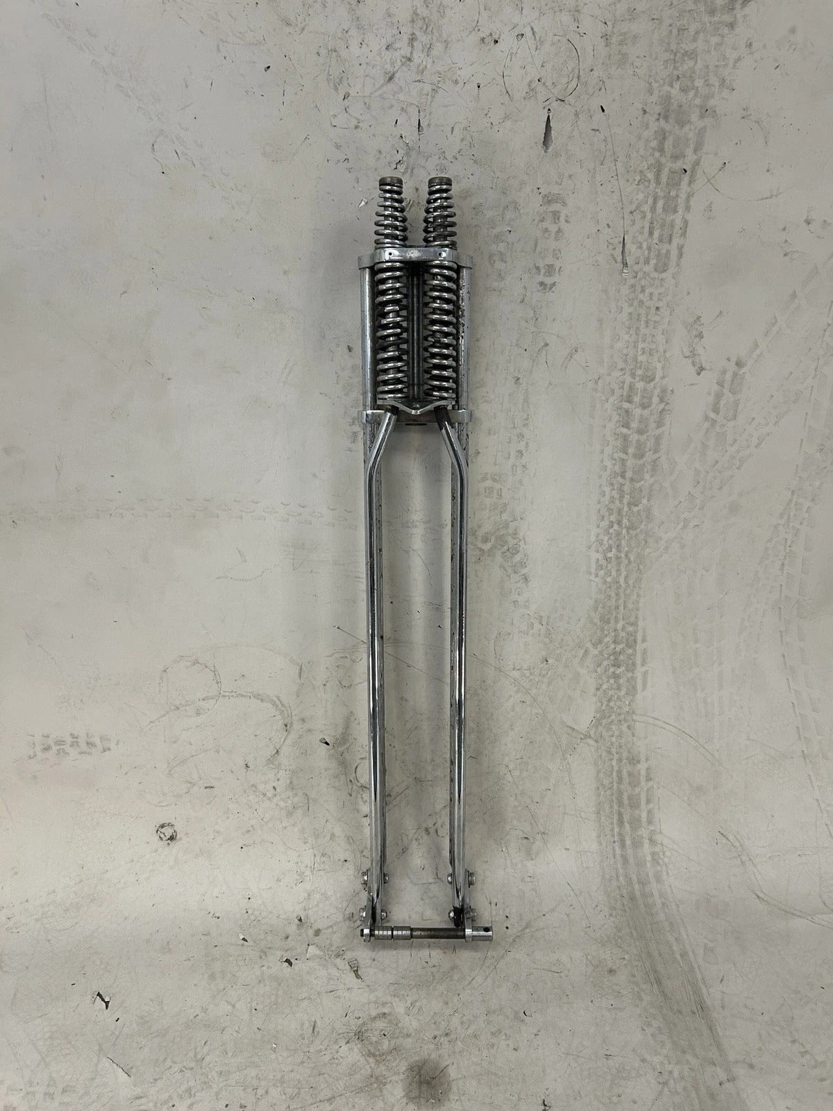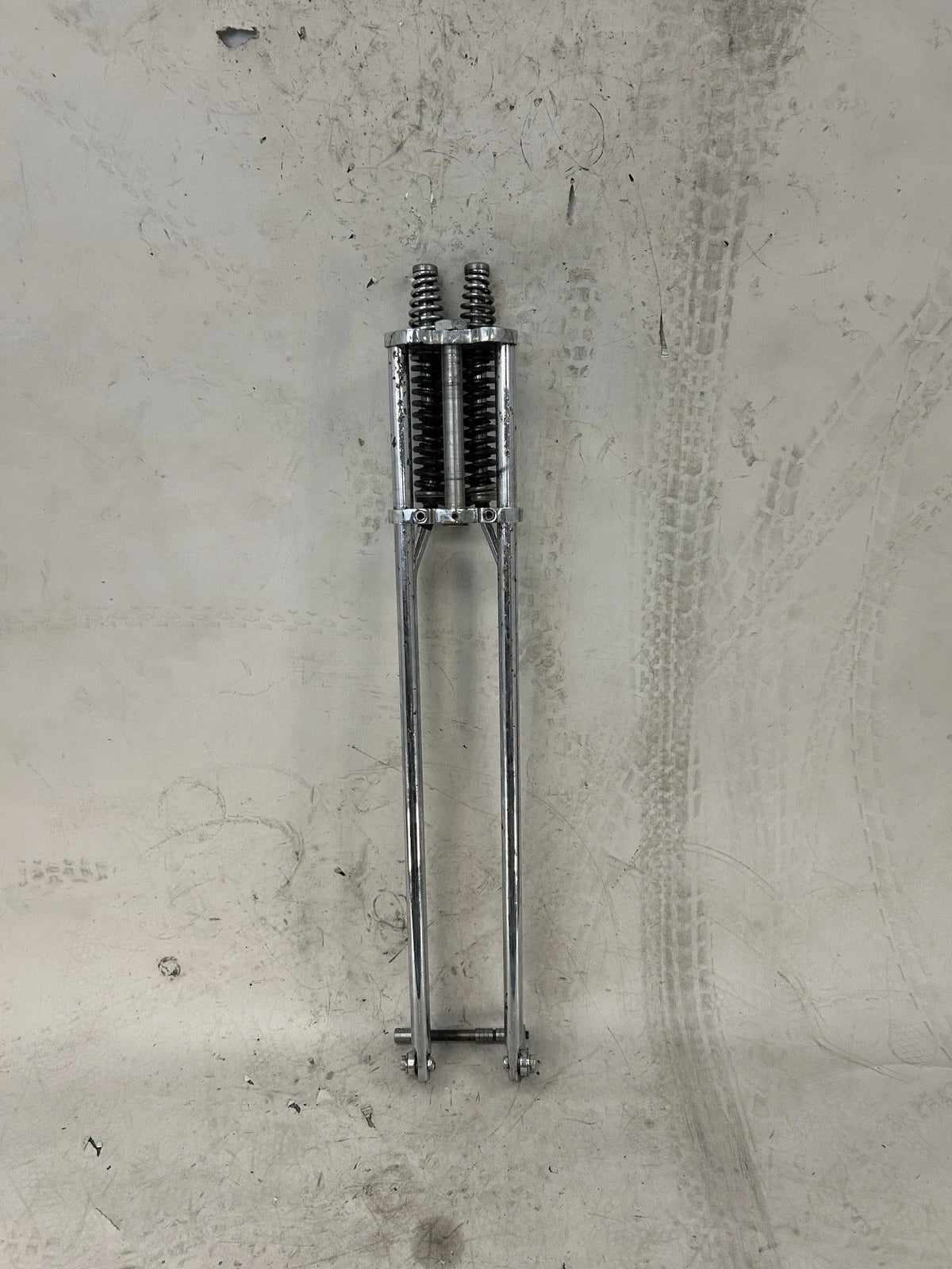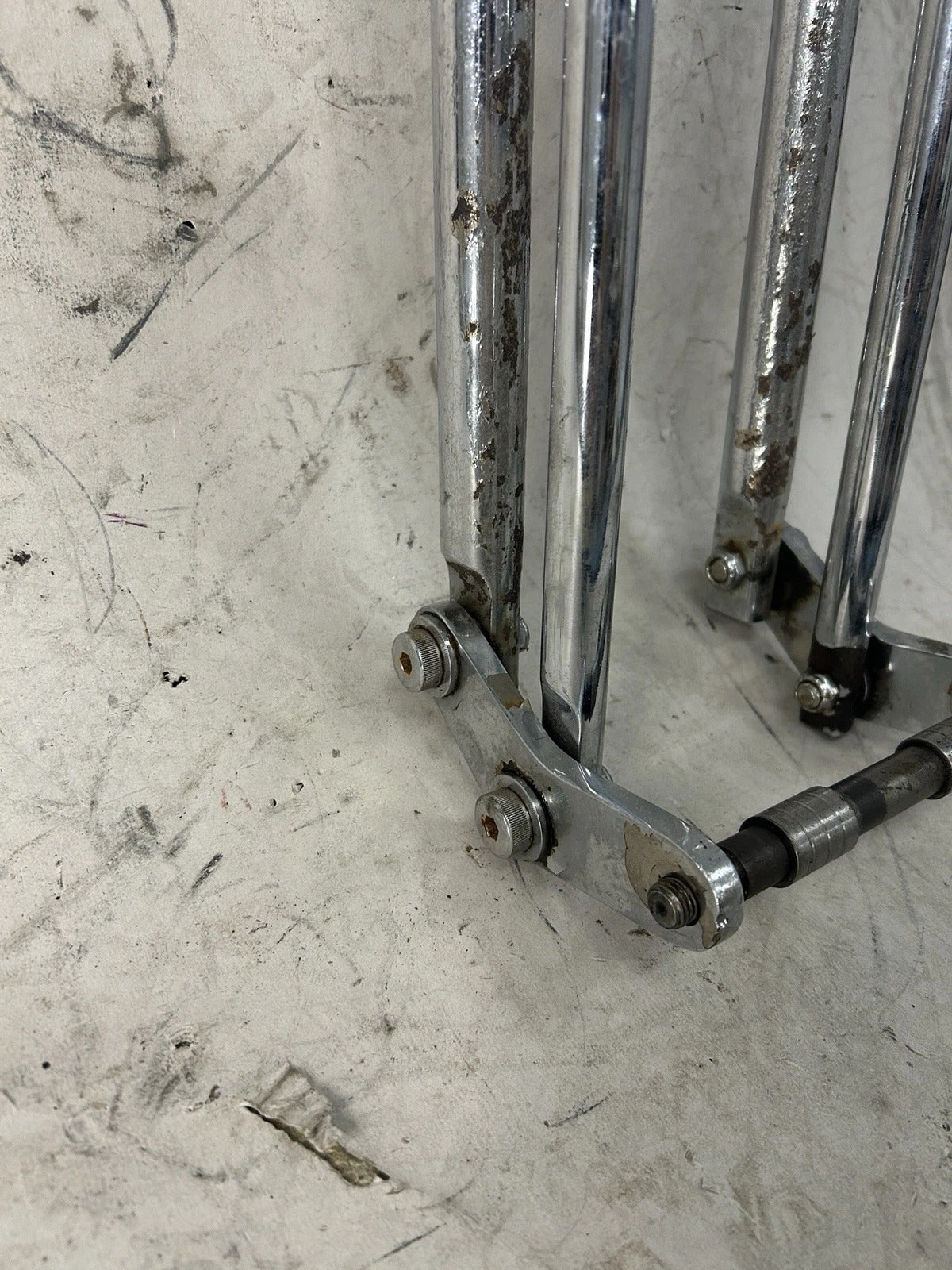 In good, straight condition, measures about 8" over stock. The chrome is flaked and has that good chopper look to it.