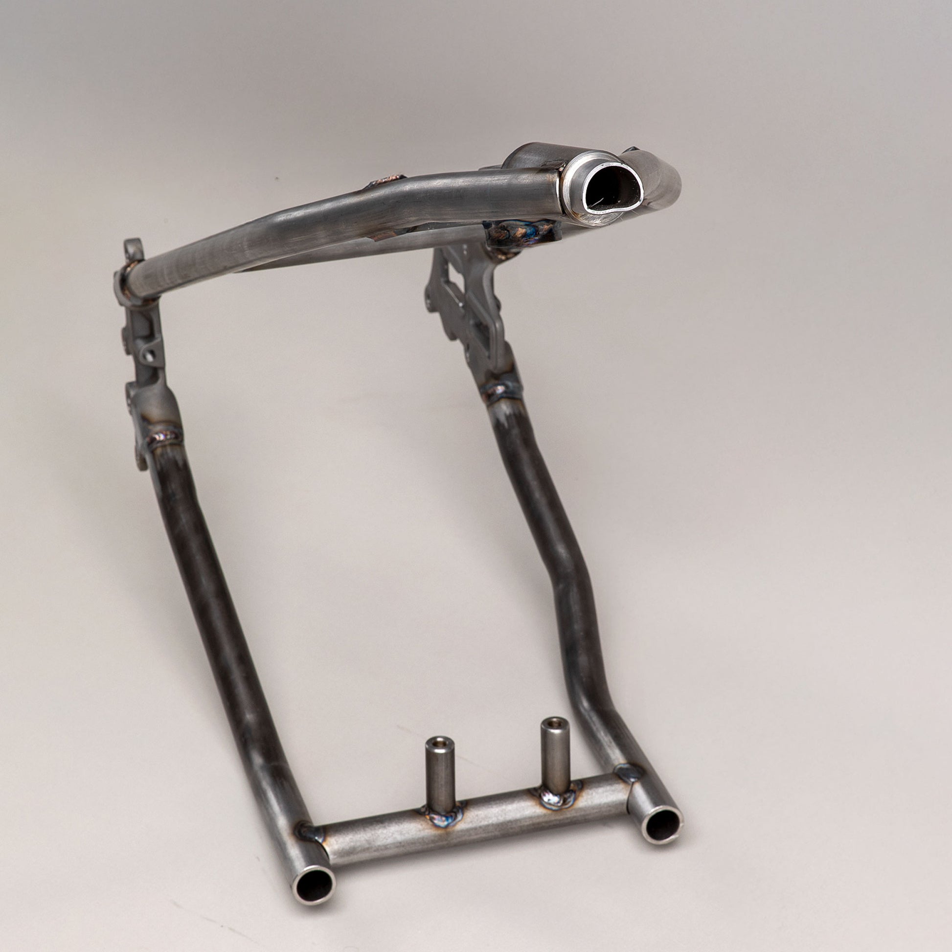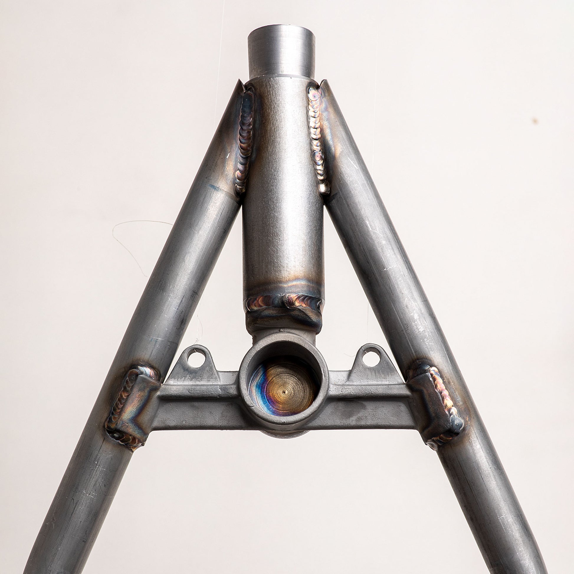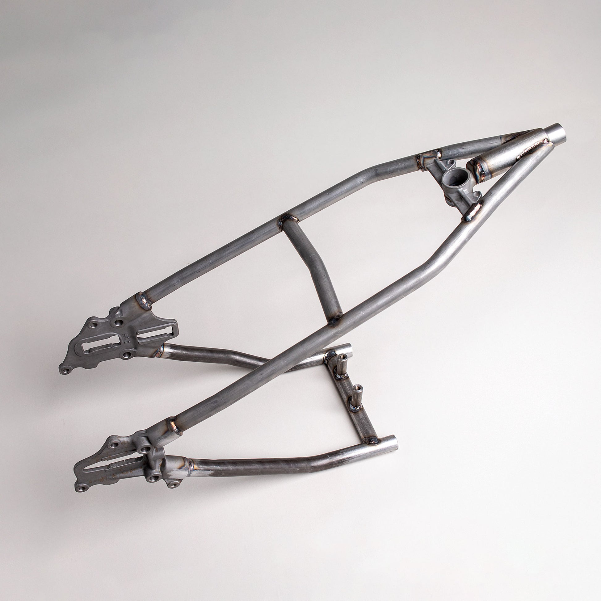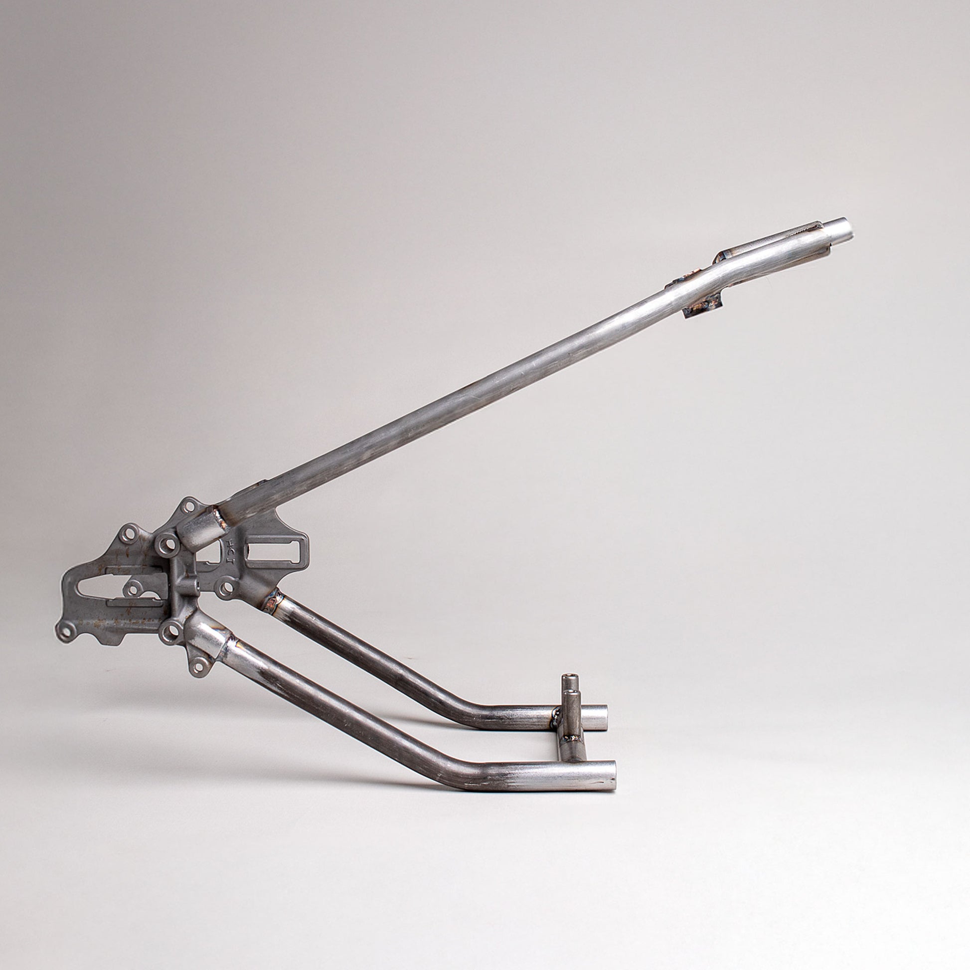 This setup runs replica style cast axle plates and a cast seat post yoke by HCI and are poured in a foundry here in the USA. I" top rails with lines that stay lean and 1 1/8" bottom rails to seamlessly line up with the your chassis. Everything is TIG welded in-house here in Northern California.
