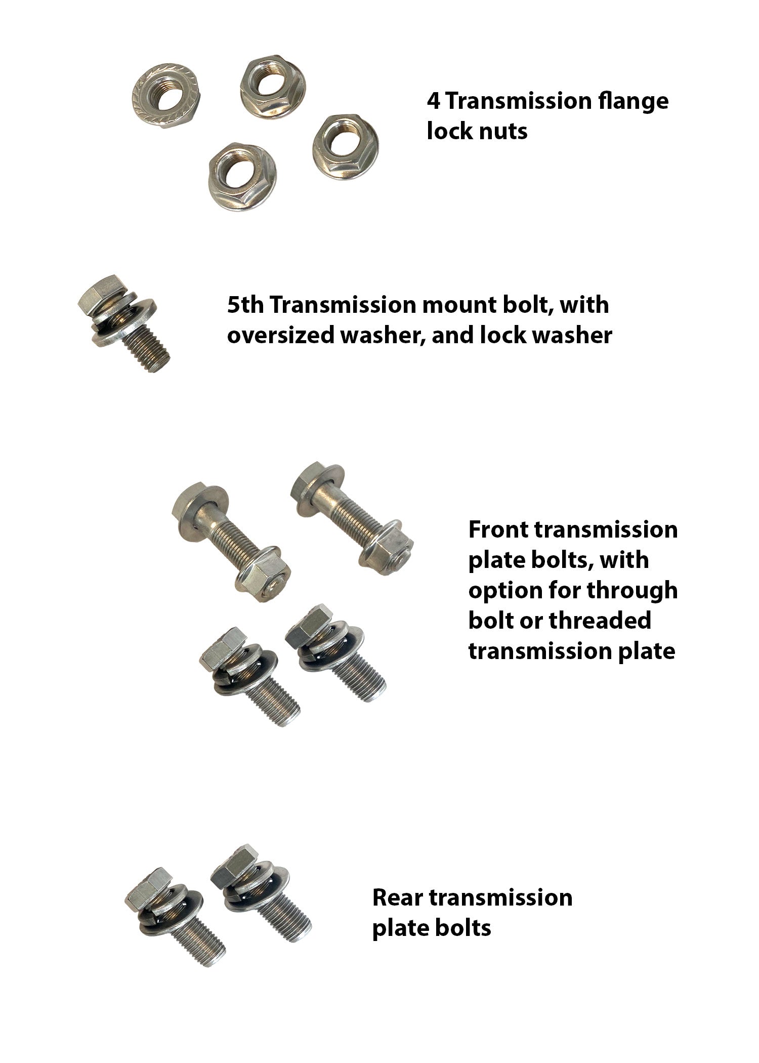 Lock in your 4-speed the right way. This stainless steel kit includes all the hardware you need to mount your Big Twin transmission to the frame and plate—no rust, no fuss, no junk.