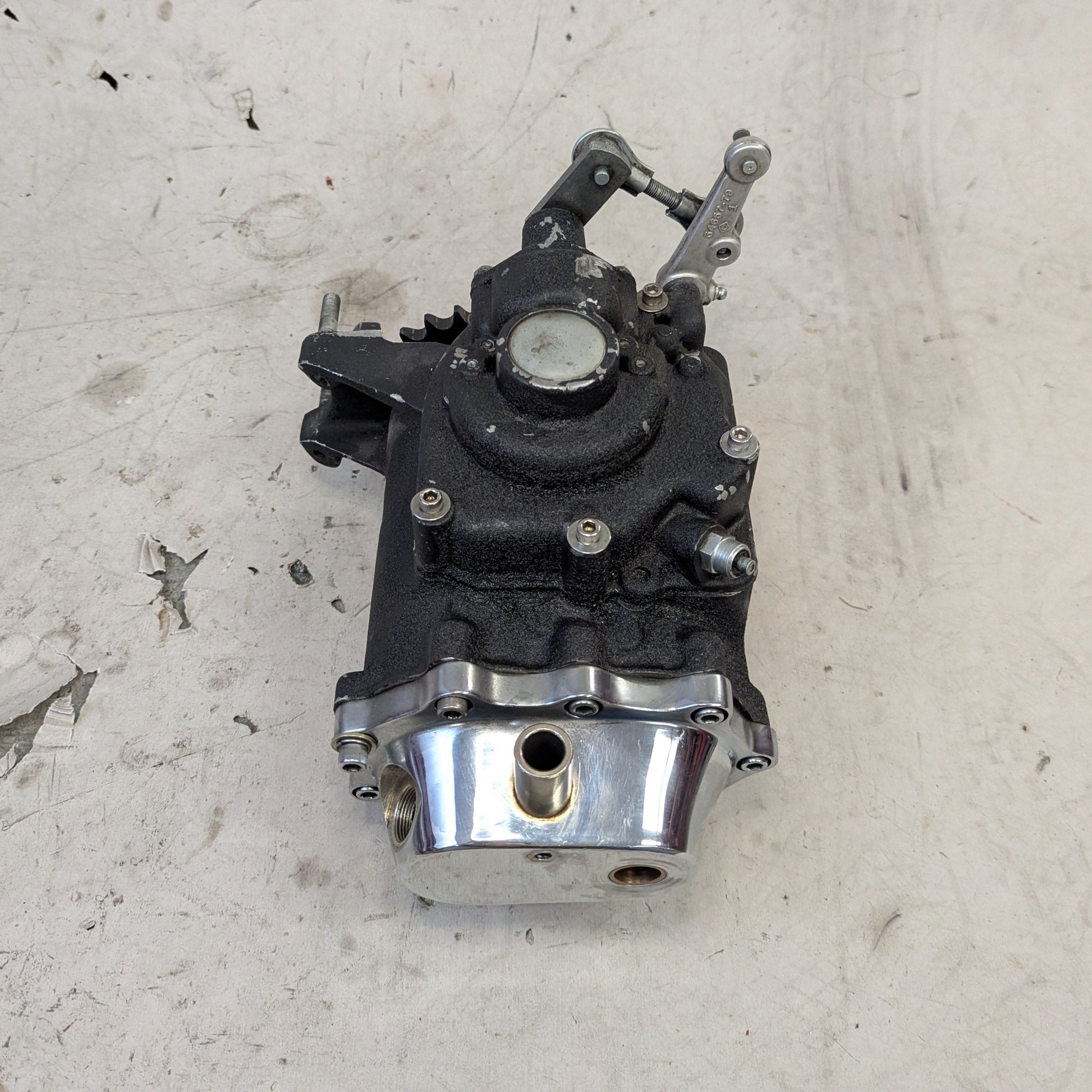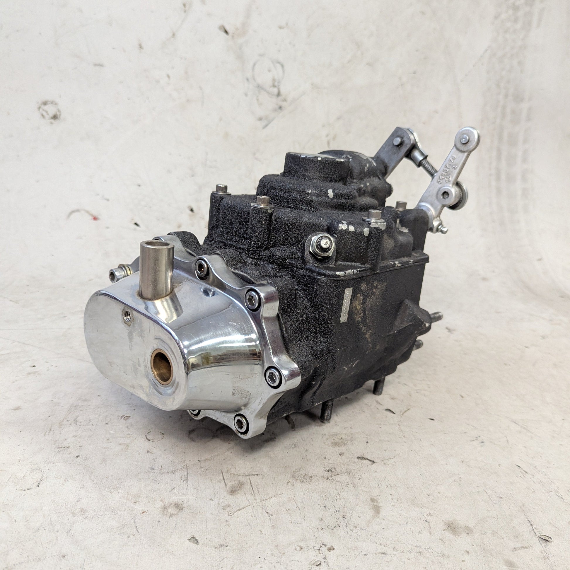 This is a good transmission pulled from a running, riding bike. It has the kicker cover, but it is empty and will need the kicker hardware as well as a throughout rod. The black wrinkle paint on this, is not the best that I've seen, and has a few small chips, but is overall clean. Put a new kicker cover on this, mount it on your bike, and ride.