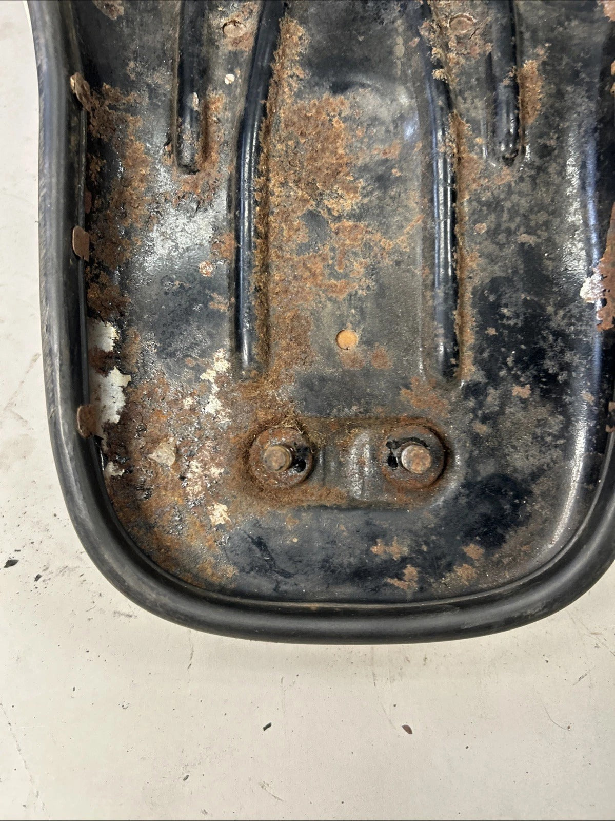 In overall great condition with minimal damage. One small tear in the front and a little bit of separation in the rear, but both are minor. Mounting studs and holes are in good shape.
