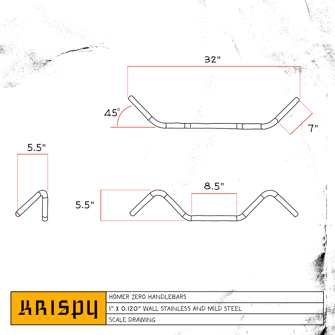 We’re still building out the handlebar lineup. If this bar doesn’t have the riser width you need, hit us at info@krispychoppers.com and tell us what you’re after—we’ll get a custom order rolling. If you’re after a fully custom bar, reach out to Garrett on Instagram: @blatzside.