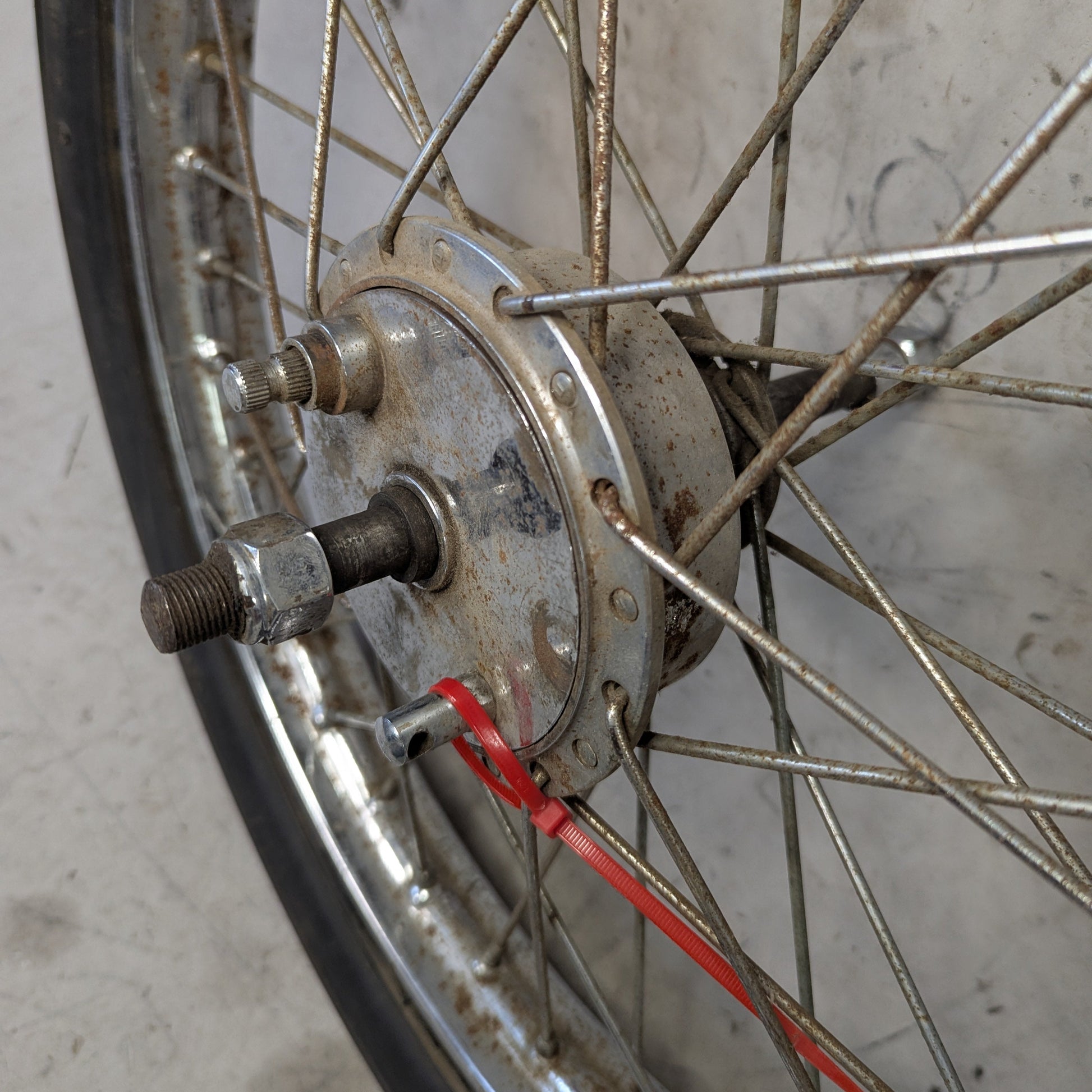 It might be crusty but it's still in good shape. Not Bent, has all it's internals. It is missing the brake arm which I'm sure is pretty standard and could be easily found or customized.